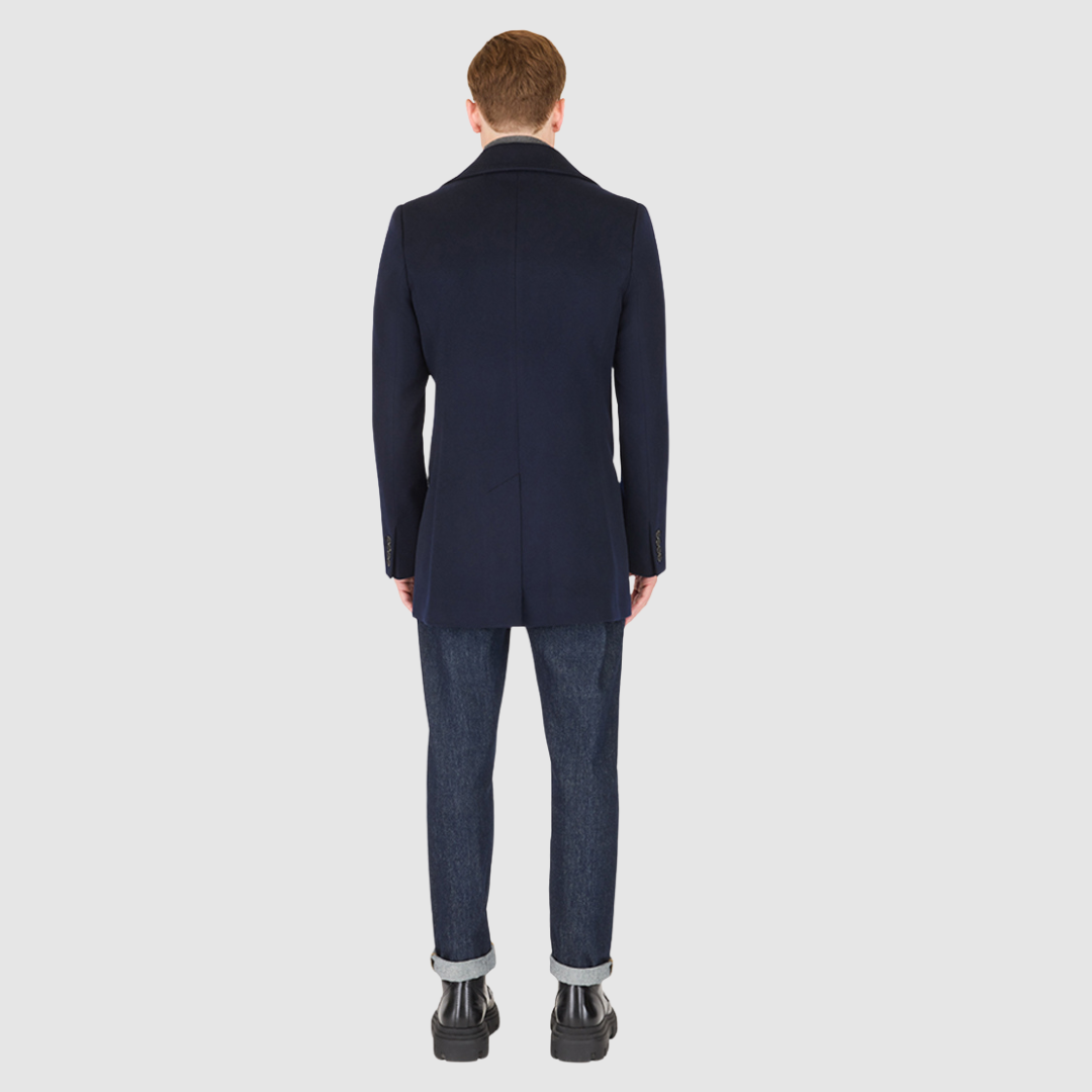 The David Navy Loro Piana Wool Jacket embodies timeless sophistication and precision tailoring. Crafted from Loro Piana superfine wool, this double-breasted jacket offers a refined structure and a luxurious hand-feel that elevates any modern wardrobe. Designed with a regular shoulder and a fitted silhouette through the arms and body, it delivers a sharp, polished profile. The peak lapel collar, back vent, and single welt pockets underscore its heritage-inspired craftsmanship, merging Italian elegance with contemporary versatility—perfect for both urban sophistication and tailored winter layering.