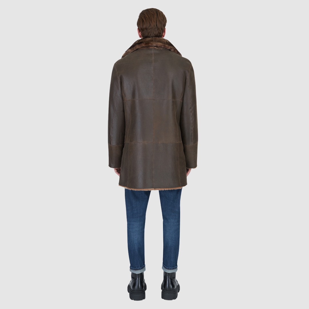 - Mid-length nappa exterior reversing to ironed wool teddy