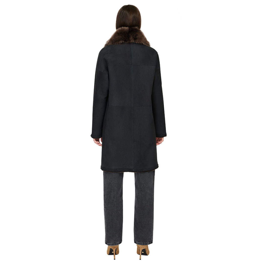The August Carbon Reversible Shearling Jacket is a versatile outerwear staple that blends refined tailoring with modern ease. Crafted in supple suede leather, it reverses to an toscana wool teddy for a completely different look and feel. Designed with a slightly dropped shoulder and a loose, relaxed silhouette, it’s finished with a double-breasted button closure for a polished yet effortless finish.