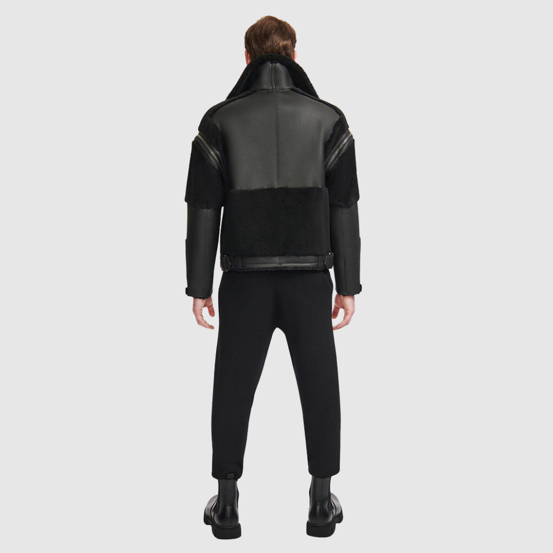 - Men’s nappa shearling moto jacket with curly wool detailing