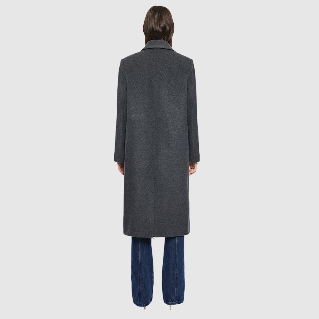 The MIA Charcoal Wool Coat is tailored from a premium Italian wool-cashmere blend, offering a refined take on masculine-inspired outerwear. Its single-breasted design and regular shoulder create clean, elongated lines, while the notch collar and back vent add structure and ease of movement. Finished with single welt pockets, MIA delivers a modern silhouette with timeless sophistication.