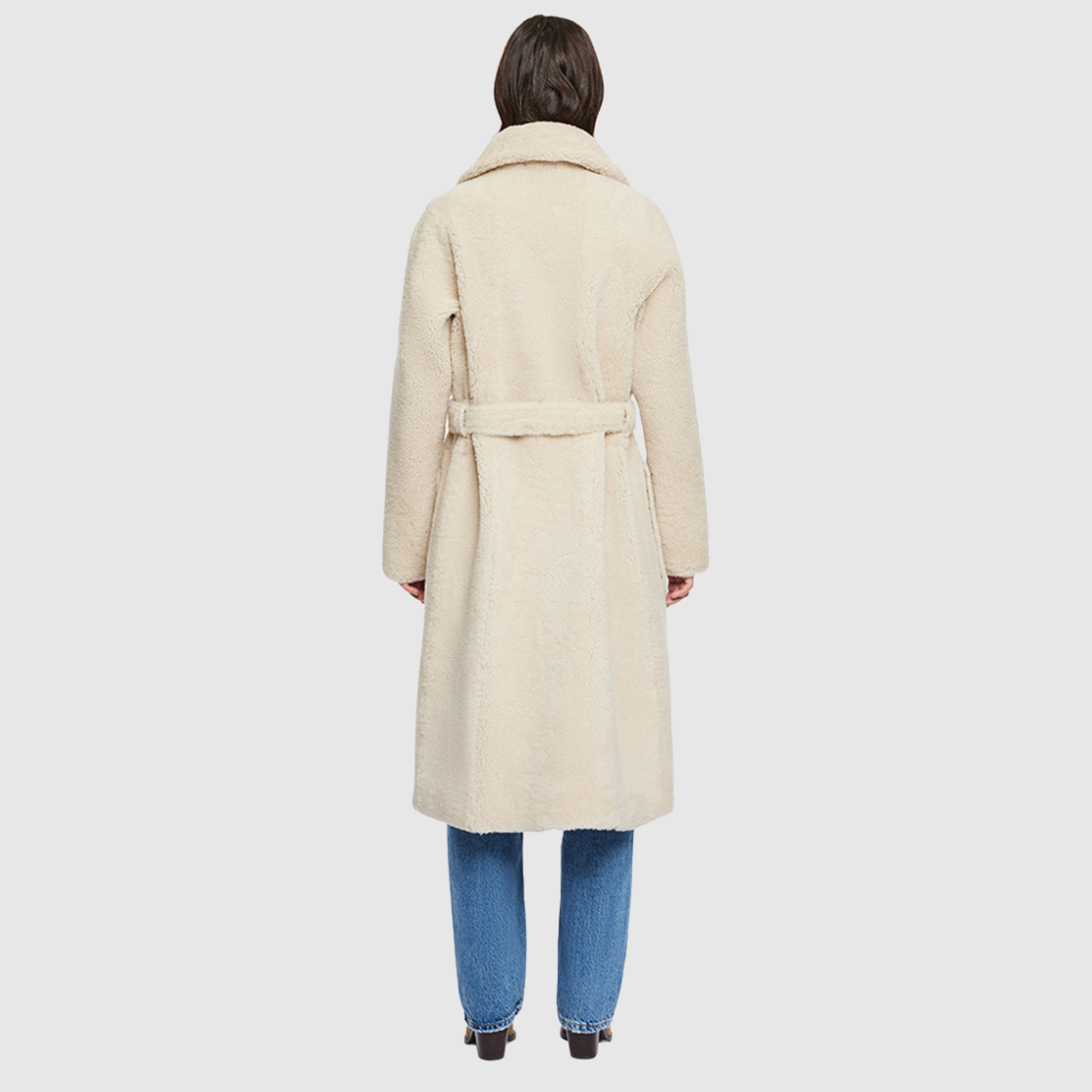 The ZIRA Coat is a heritage-inspired vintage reversible shearling jacket crafted in arabica nappa and curly wool. Designed to flip effortlessly from sleek nappa to plush curly wool teddy, it delivers versatile styling for both après-ski sophistication and everyday cold-weather elegance. Featuring a relaxed dropped shoulder, notch collar, and 3-button closure, ZIRA combines modern tailoring with timeless texture. Practical zip pockets on the nappa side and patch pockets on the teddy side, along with a tie belt at the waist on the reversed side, complete this luxurious reversible shearling coat.