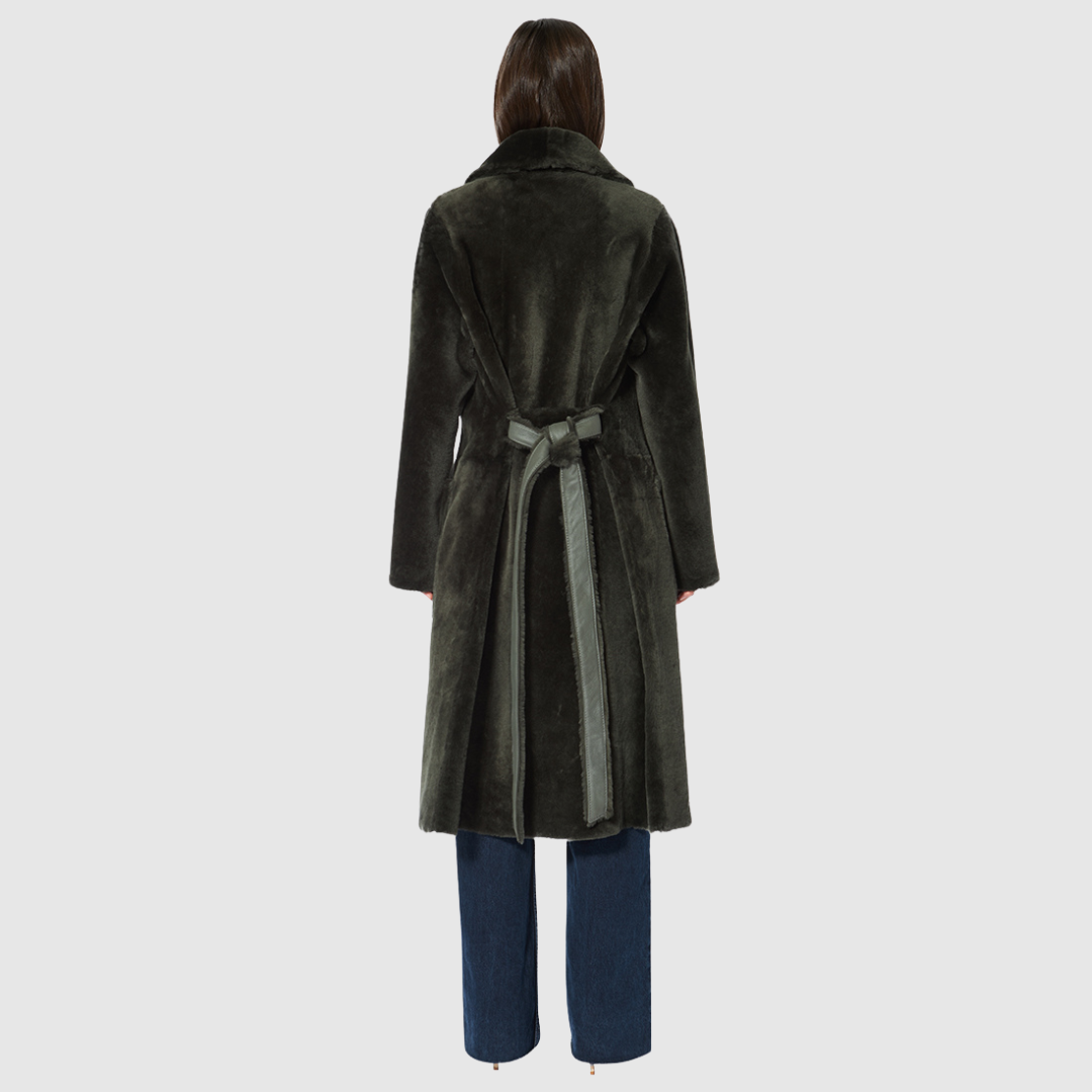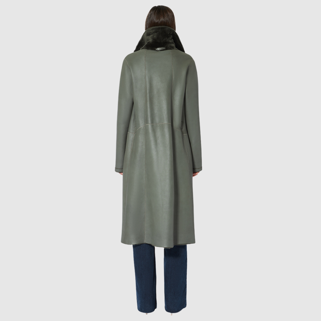 Zira Khaki Reversible Shearling Coat
